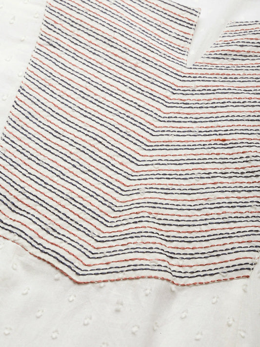 White Woven A-Line Kurta with Trousers & Dupatta