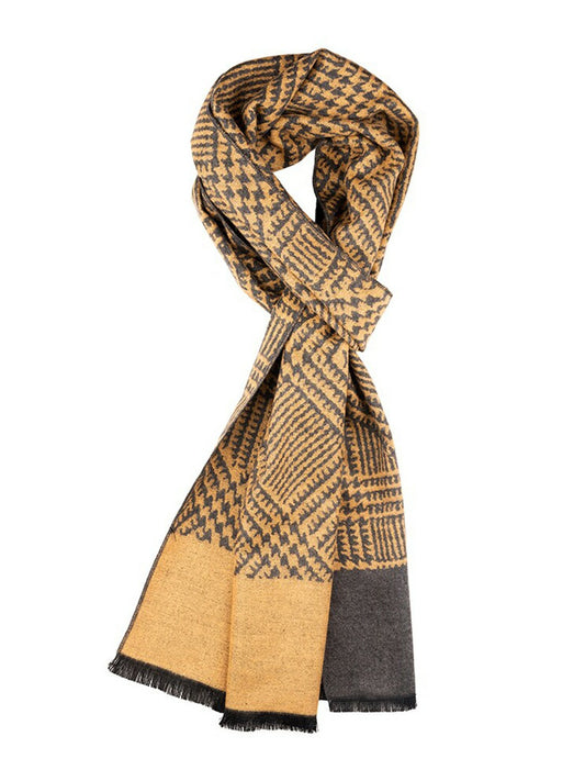 Men Checked Woolen Scarf with Frayed Border – Yellow & Grey | Indiaista