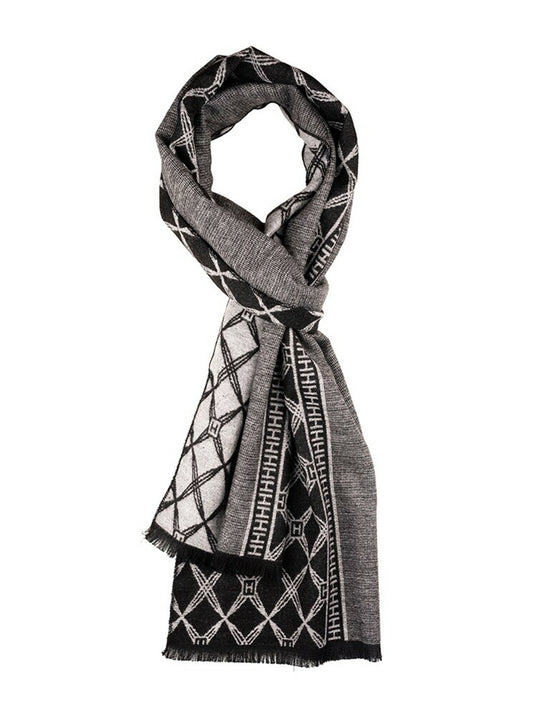 Men Woolen Printed Scarf - Grey & Black | Stylish & Warm | Indiaista