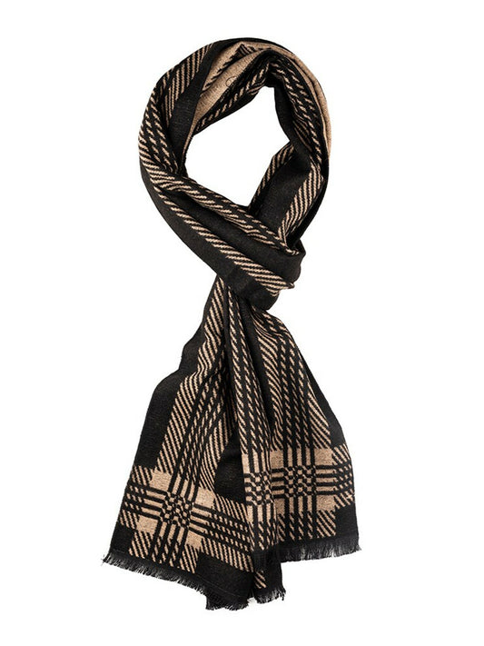 Stylish Men's Checked Woolen Scarf - Black & Beige | Indiaista