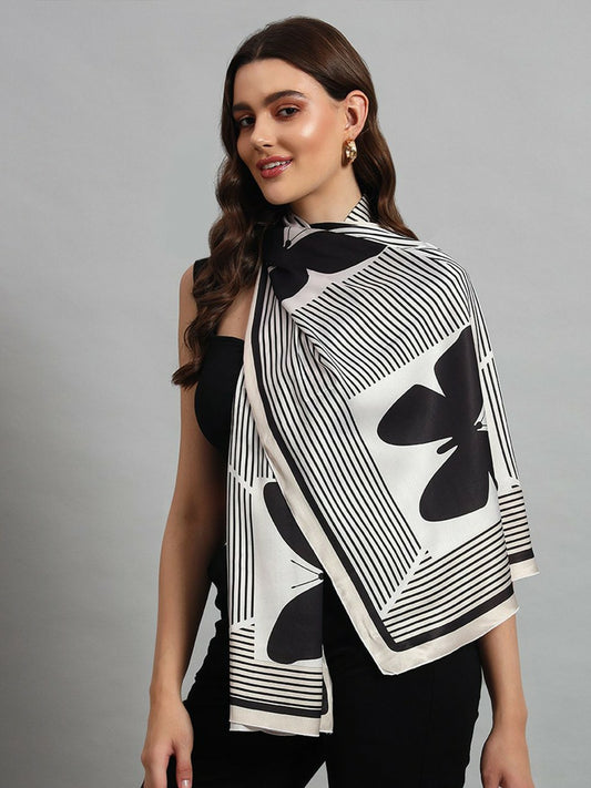 Buy Women Silk Butterfly Printed Scarf – Beige & Black | Indiaista
