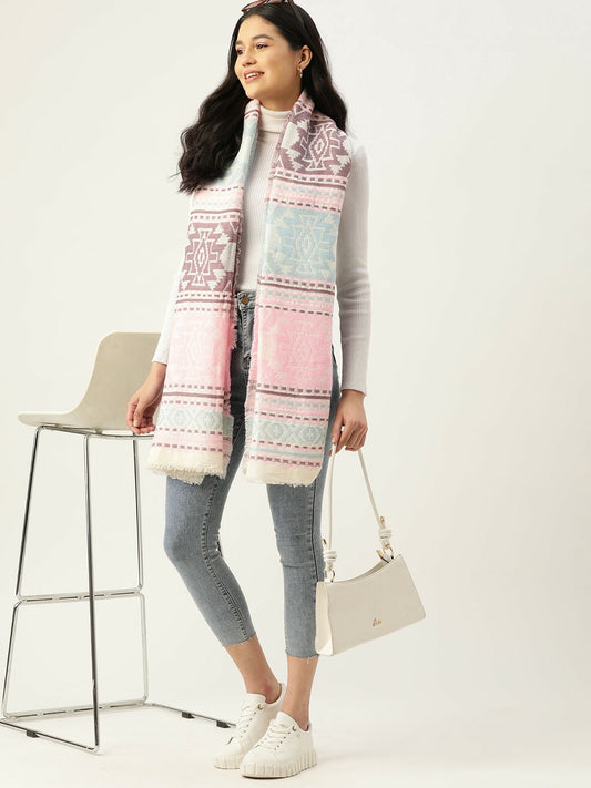 Buy Women’s Self Design Wool Acrylic Scarf – Pink & White | Indiaista