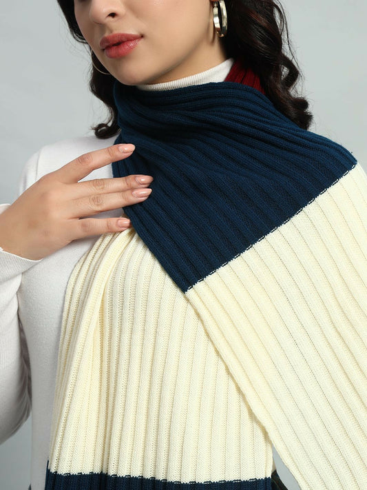 Buy Women’s White & Blue Colourblocked Scarf – Elegant & Stylish | Indiaista
