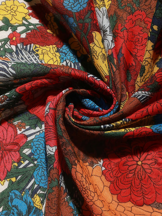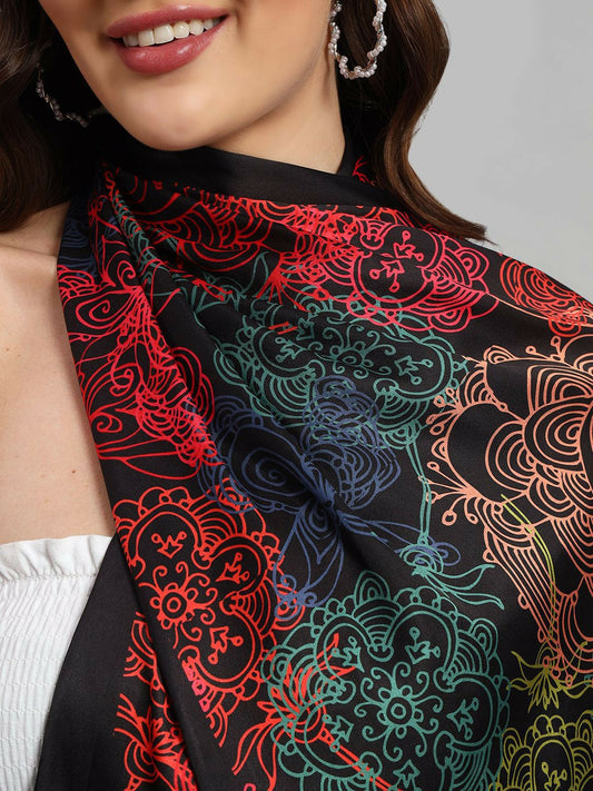 Women Printed Scarf – Elegant Black & Red Design with Solid Border | Indiaista