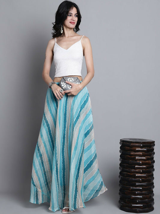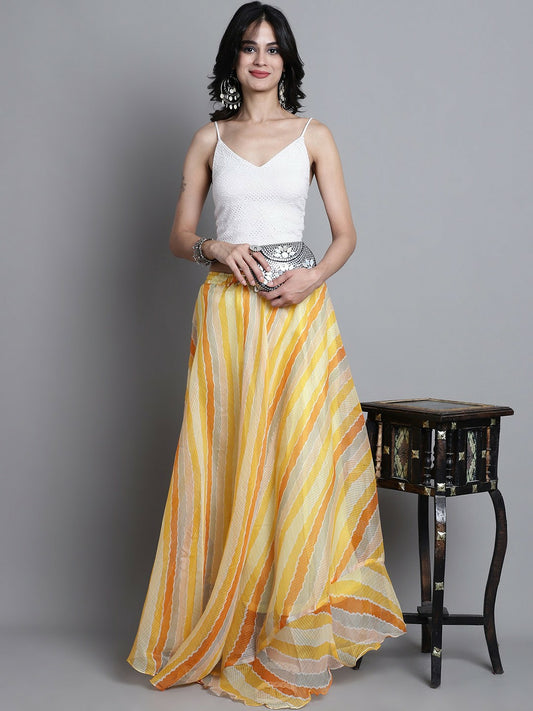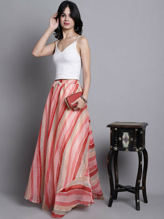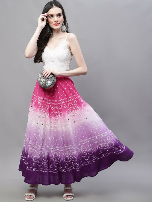 Boho Bandhani Printed Maxi Skirt for Women | Pink, White & Purple Flared Cotton Skirt