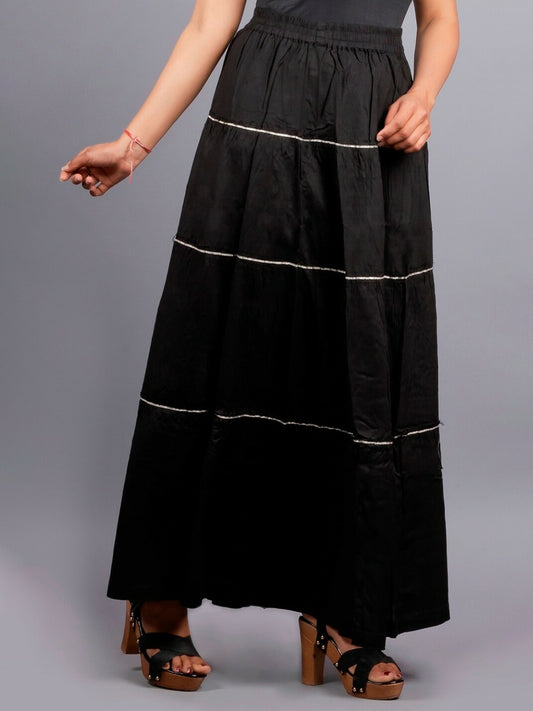 Black Flared Maxi Tulle Skirt for Women | Vintage-Inspired Skirt with Striped Detail