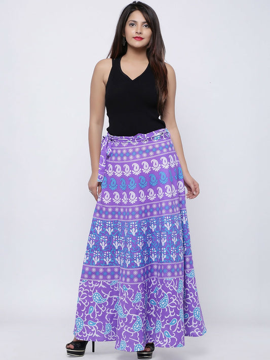 Purple & Blue Ethnic Print Bohemian Wrap-Around Maxi Skirt | Pure Cotton | Vintage Style