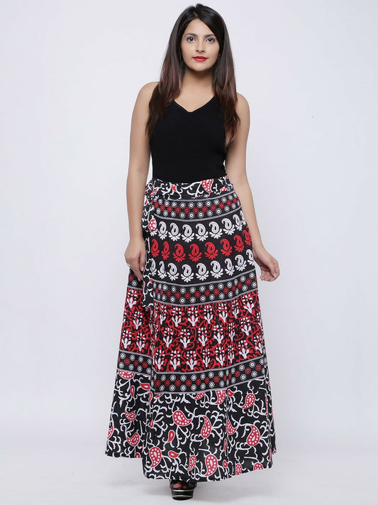 Boho Vintage Printed Wrap Around Maxi Skirt for Women | Elastic Waistband & Flared Hem