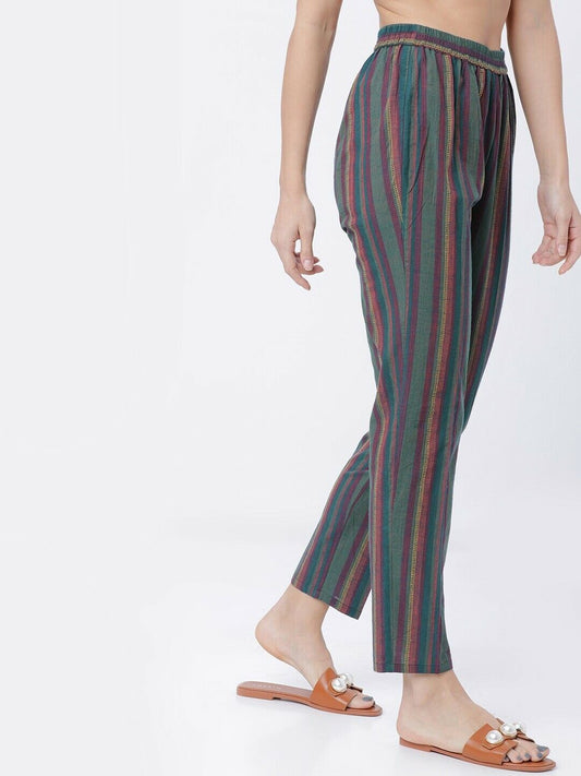 Bohemian Harem Pants for Women – Green & Pink Striped Gypsy Peasant Trousers | Indiaista