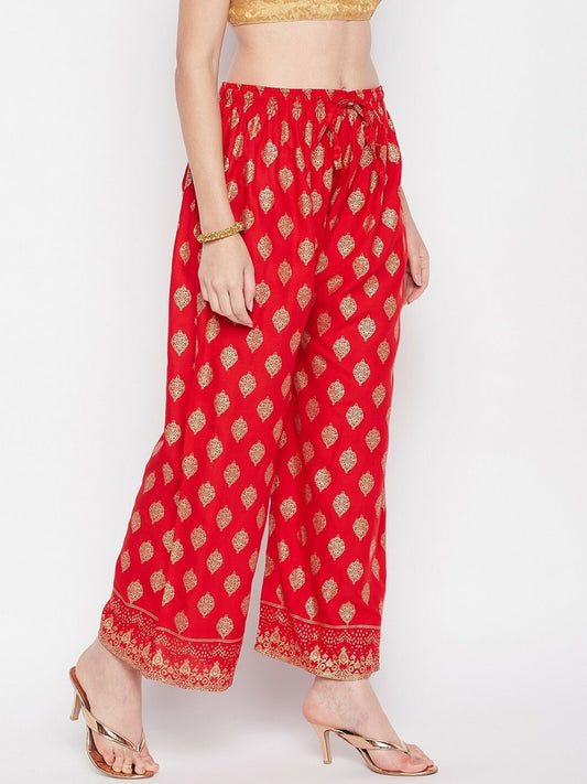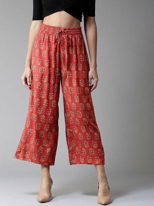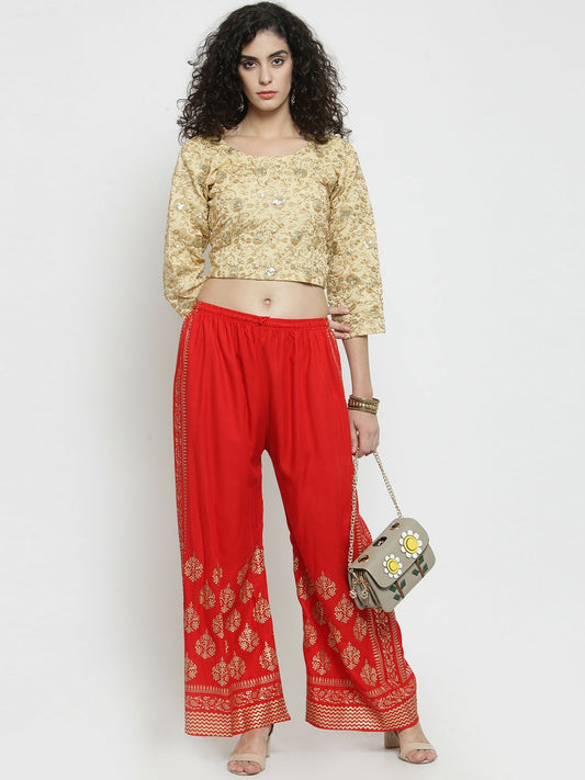 Red & Gold Ethnic Printed Harem Palazzos – Boho Gypsy Peasant Pants for Women | Indiaista