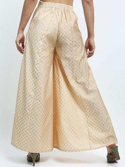 Beige Boho Harem Pants – Ethnic Motif Printed Flared Palazzo for Women | Indiaista