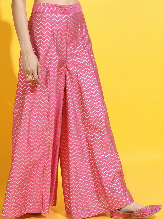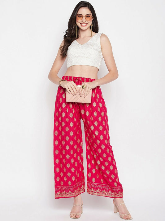 Magenta & Gold Boho Harem Pants – Ethnic Printed Viscose Palazzo for Women | Indiaista