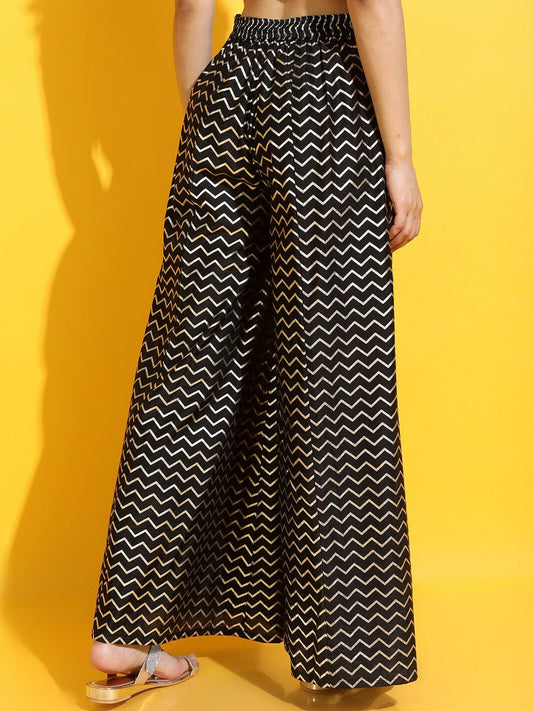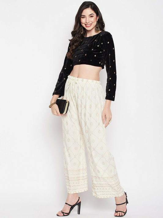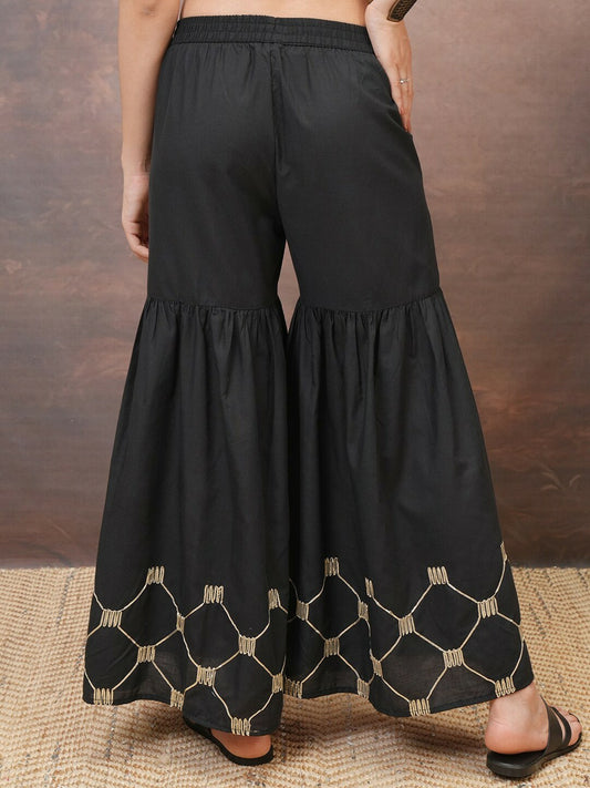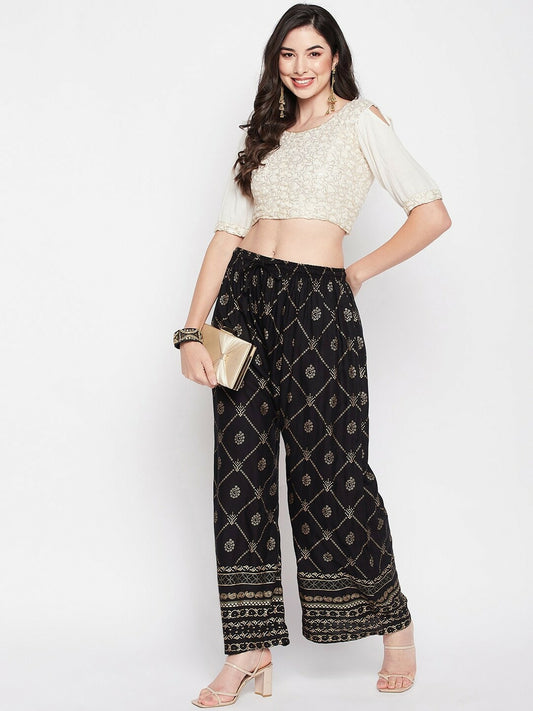 Black & Gold Boho Harem Pants – Flared Peasant Gypsy Palazzos for Women | Indiaista