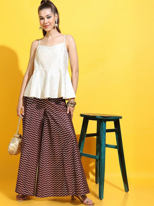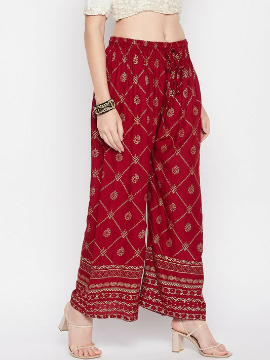 Charming Maroon Ethnic Motifs Palazzos for Women | Boho, Harem, Gypsy, Peasant Pants