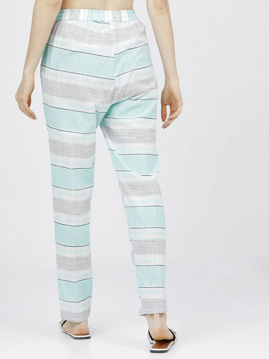 Cream & Blue Striped Boho Harem Pants – Gypsy Peasant Palazzo for Women | Indiaista