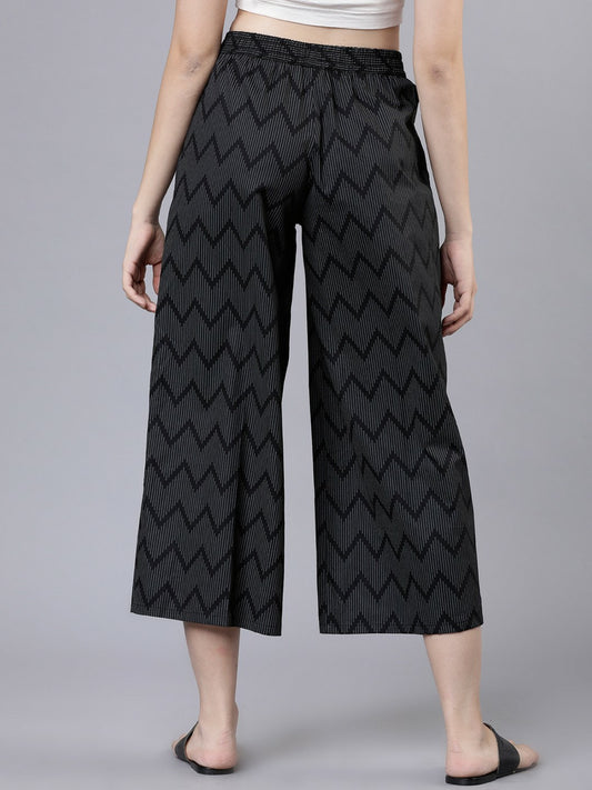 Charcoal & Black Boho Printed Harem Pants – Flared Palazzo, Gypsy Peasant Style | Indiaista