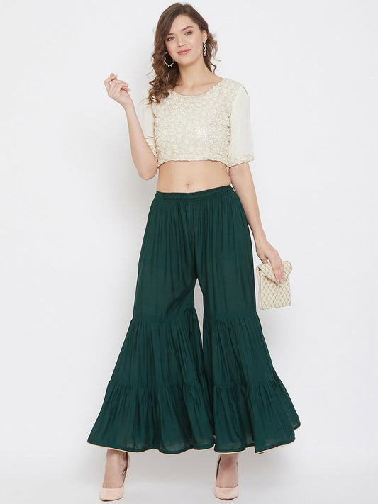 Women's Green Boho Harem Pants – Flared Peasant Gypsy Palazzo | Indiaista