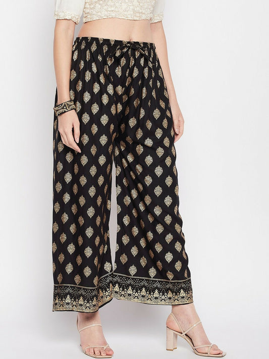 Black & Gold Boho Harem Pants – Ethnic Printed Gypsy Peasant Palazzos for Women | Indiaista