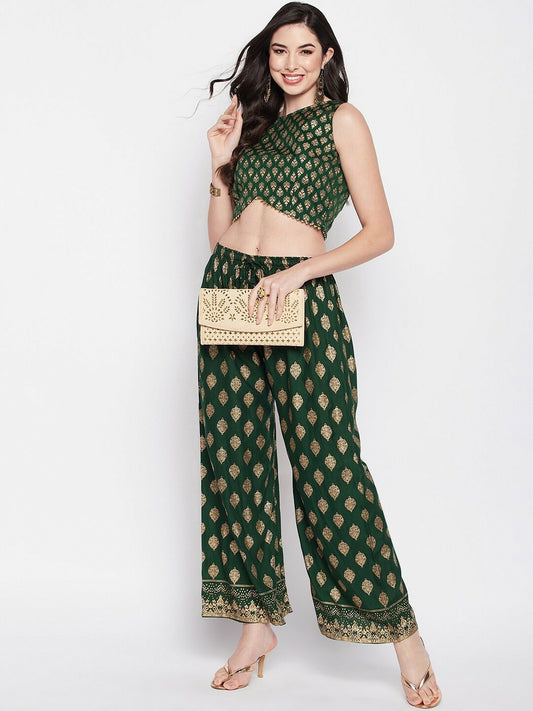 Green Boho Ethnic Printed Harem Pants – Women’s Peasant, Gypsy, Bohemian Palazzo | Indiaista