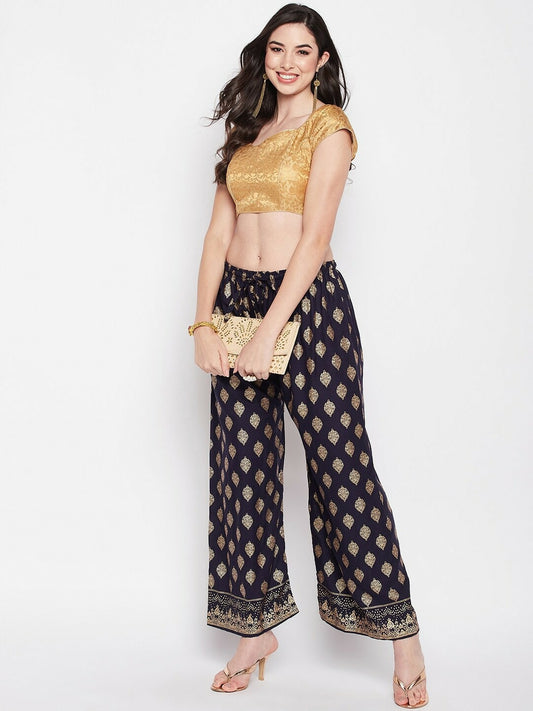 Boho Navy Blue & Gold Harem Palazzo Pants – Bohemian Gypsy Peasant Style | Indiaista