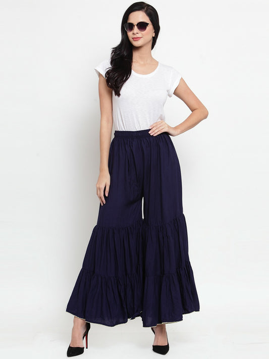 Navy Blue Boho Harem Peasant Pants – Flared Palazzo with Drawstring | Indiaista