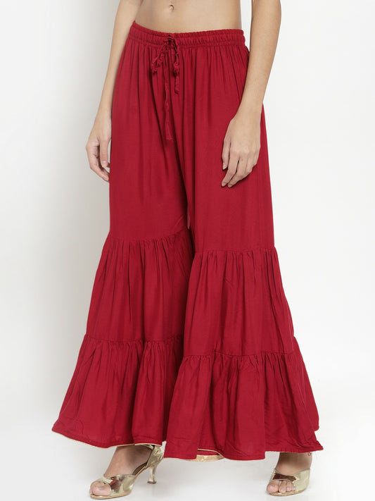 Maroon Boho Harem Pants – Flared Tiered Palazzo for Women | Indiaista