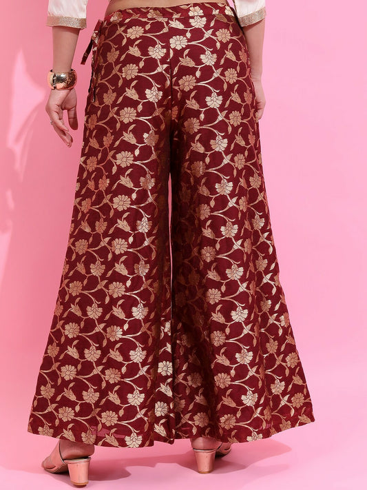 Maroon & Gold Boho Harem Pants – Ethnic Motif Flared Palazzos for Women | Indiaista