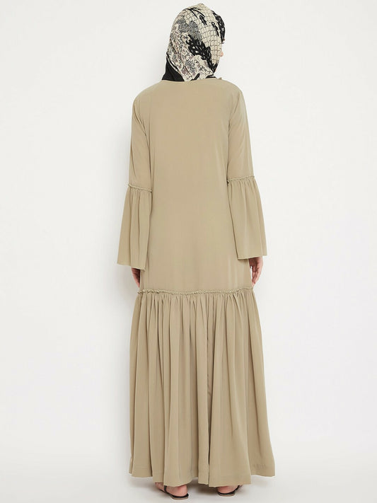 Beige Solid Abaya Burqa for Women – Modest Islamic Wear with Flared Hem & Pockets
