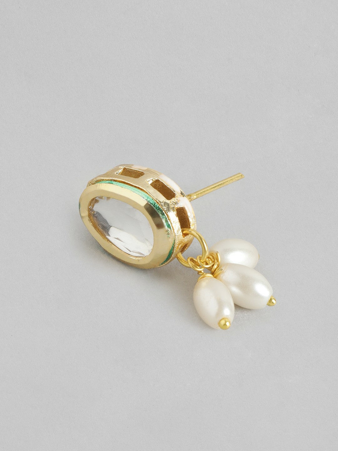 The necklace features layered design with intricate white Kundan stone detailing.
