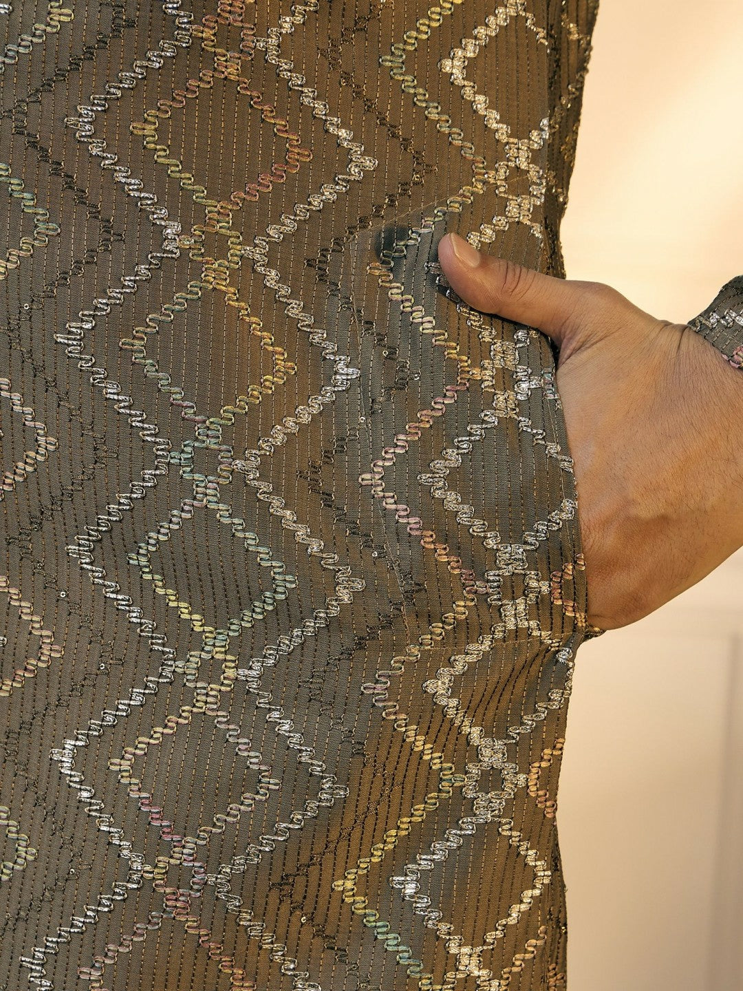 Men’s Grey Chevron Embroidered Cotton Kurta with Gotta Patti