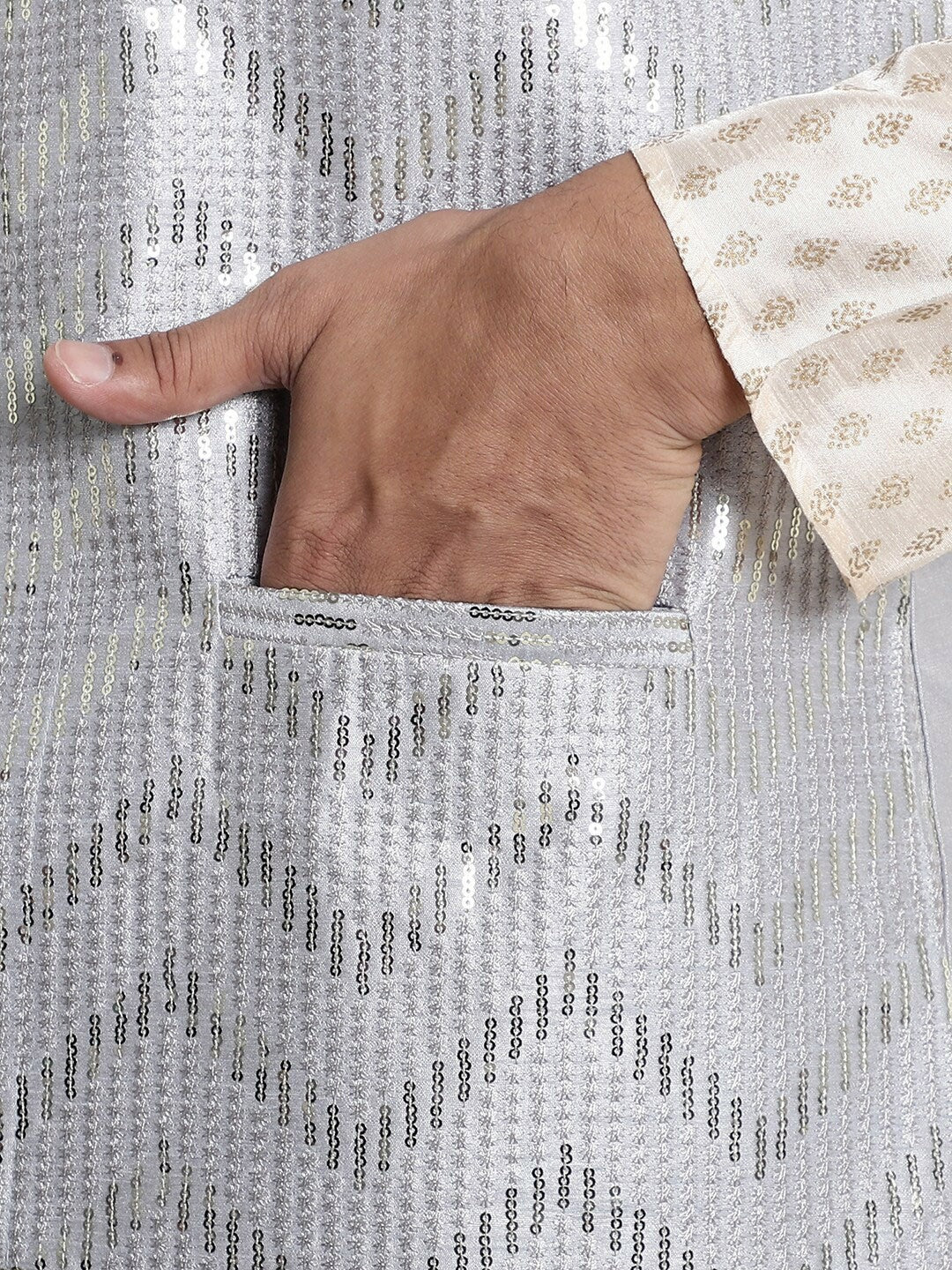 Men’s Chevron Embellished Mandarin Collar Nehru Jacket – Festive Sophistication
