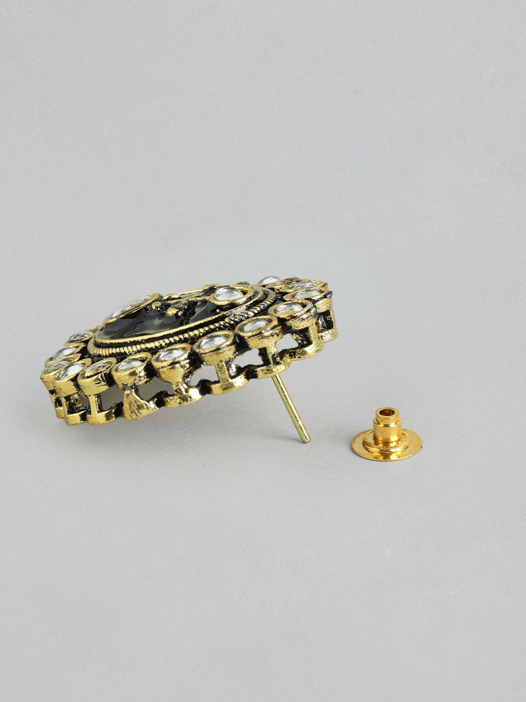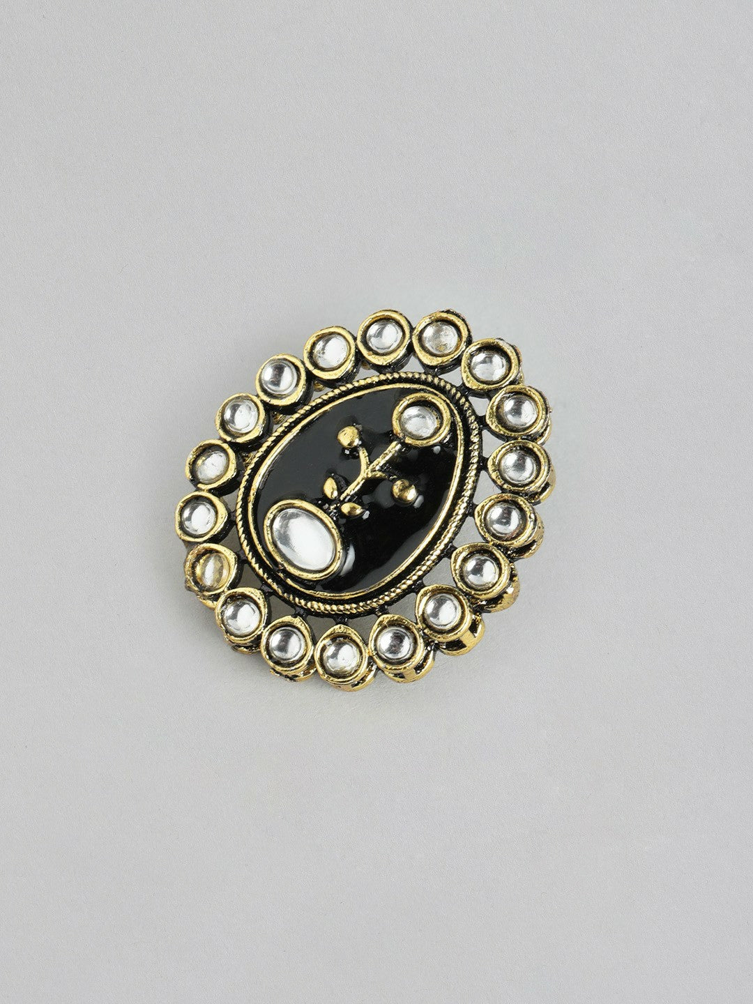 The fusion of gold-tone metal, pearls, and kundan offers timeless elegance.