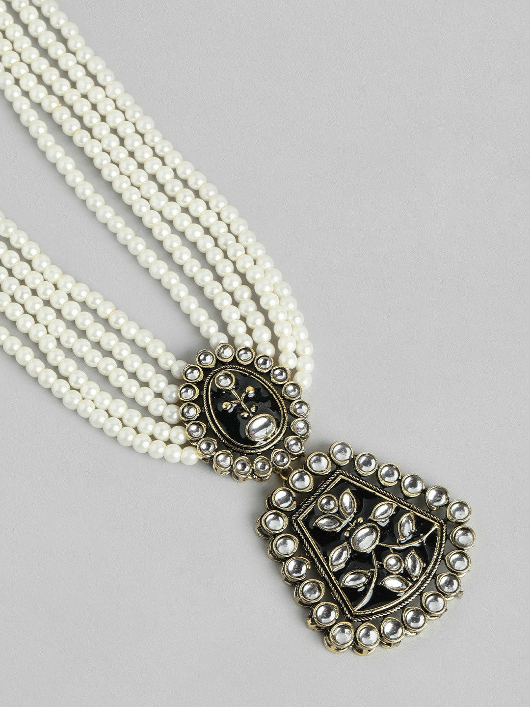Pearl Gold Plated Kundan Beaded Layered Necklace & Earrings Set