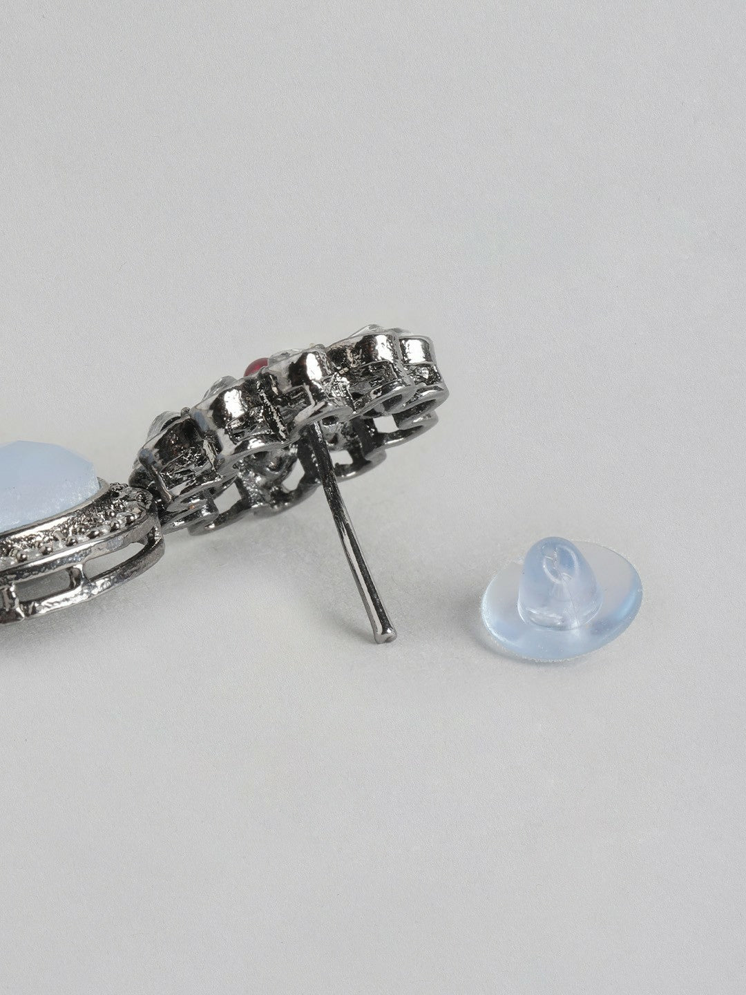 Silver Plated Grey Kundan Necklace Set with Earrings