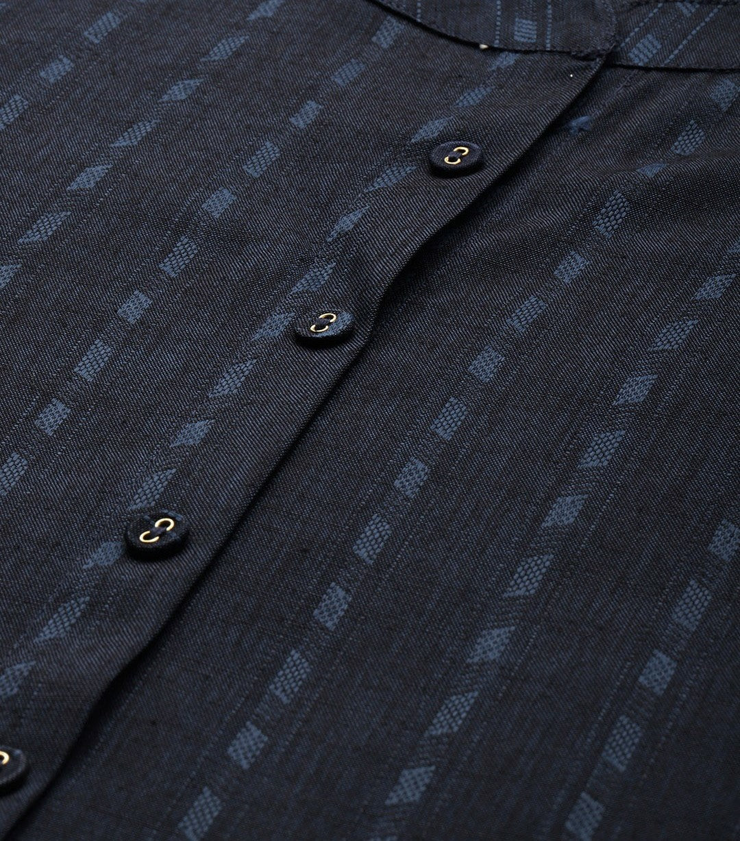 Elevate your ethnic style with this navy blue geometric woven design kurta.